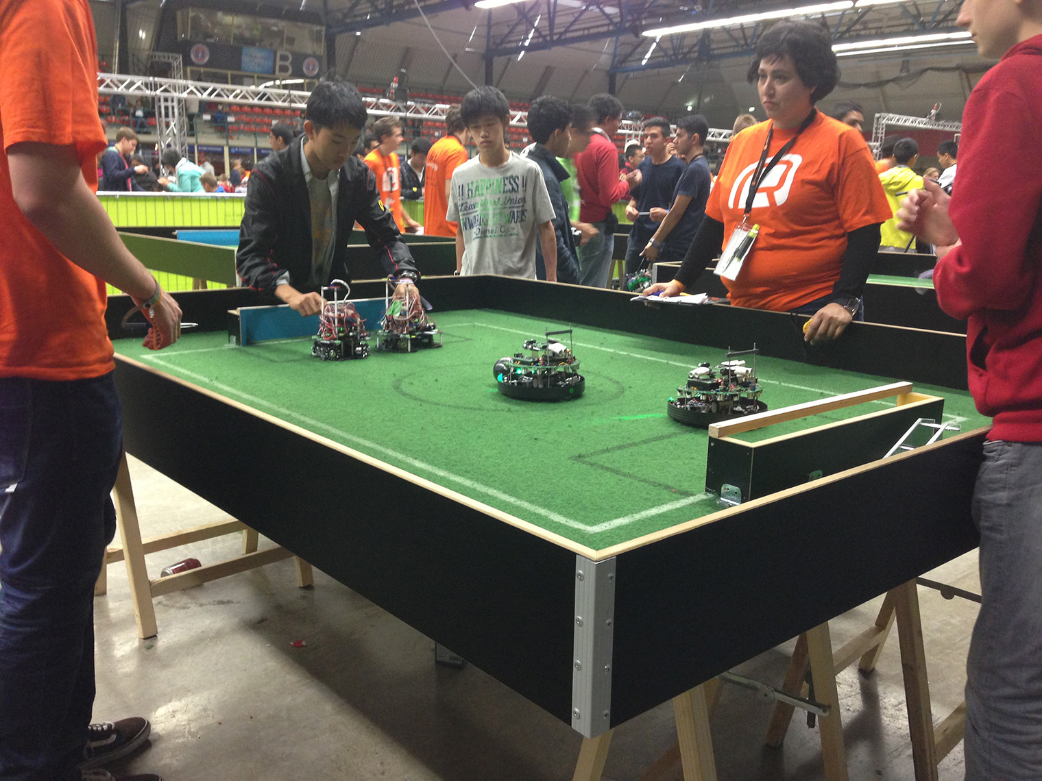もちろん、練習も大切だ。予備のロボットなどと何度も対戦させて、おかしなところがあれば修正していった。世界大会の前は、朝から夕方まで練習漬けの毎日だった、という。