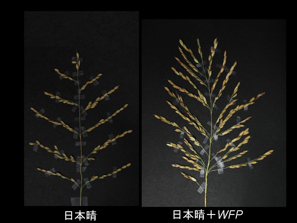 実際、下の写真のように「日本晴+WFP」は、純粋な日本晴に比べて枝の数が多くなりました。