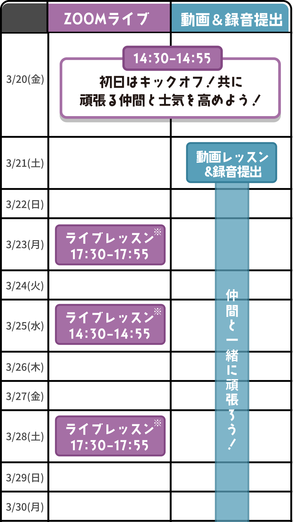✅ 朝・昼・夜・寝る前の4回、30分ずつ練習(計2時間)
