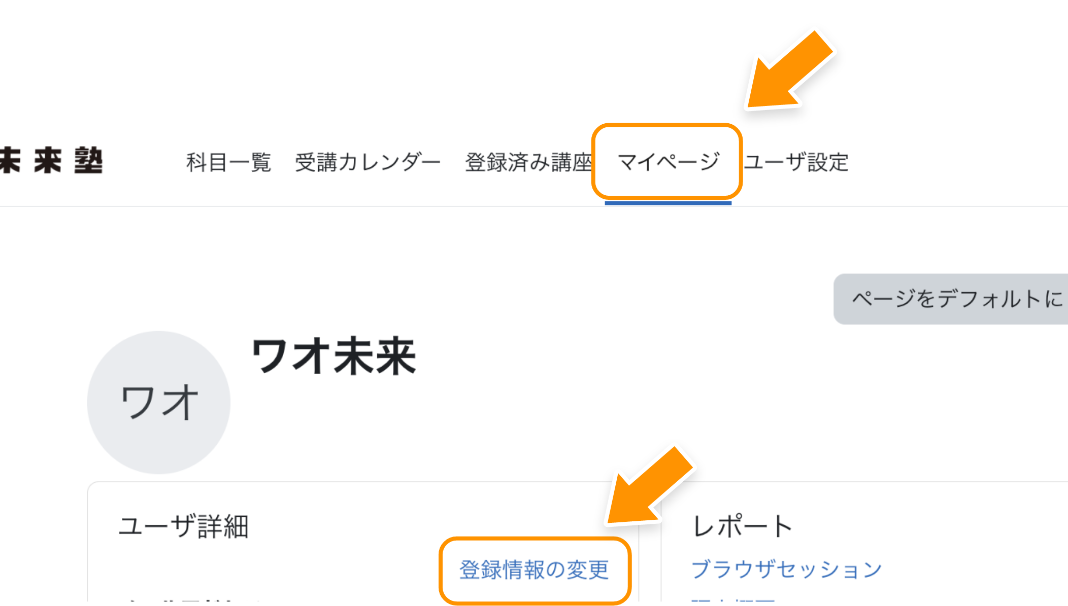 登録後、ヘッダーのマイページ→登録情報の変更をクリック