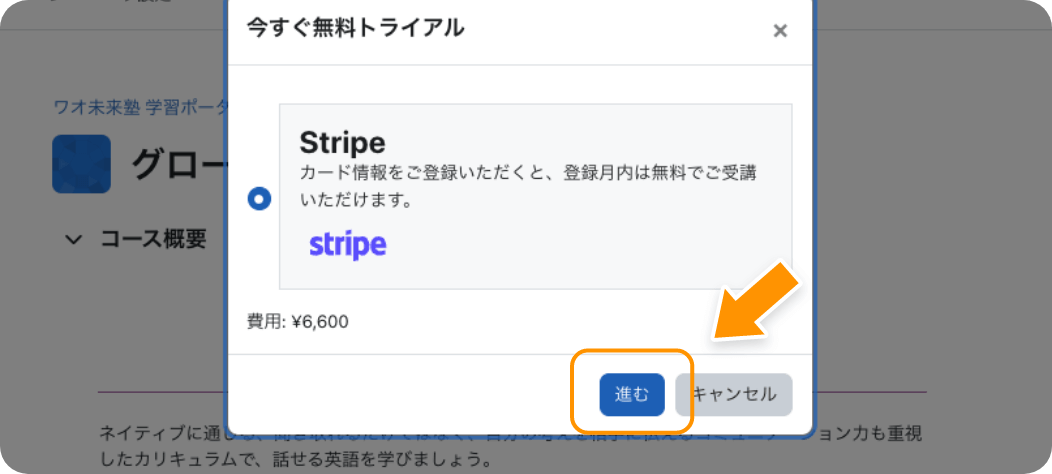 「Stripe(カード支払い)」を選択して「進む」をクリック