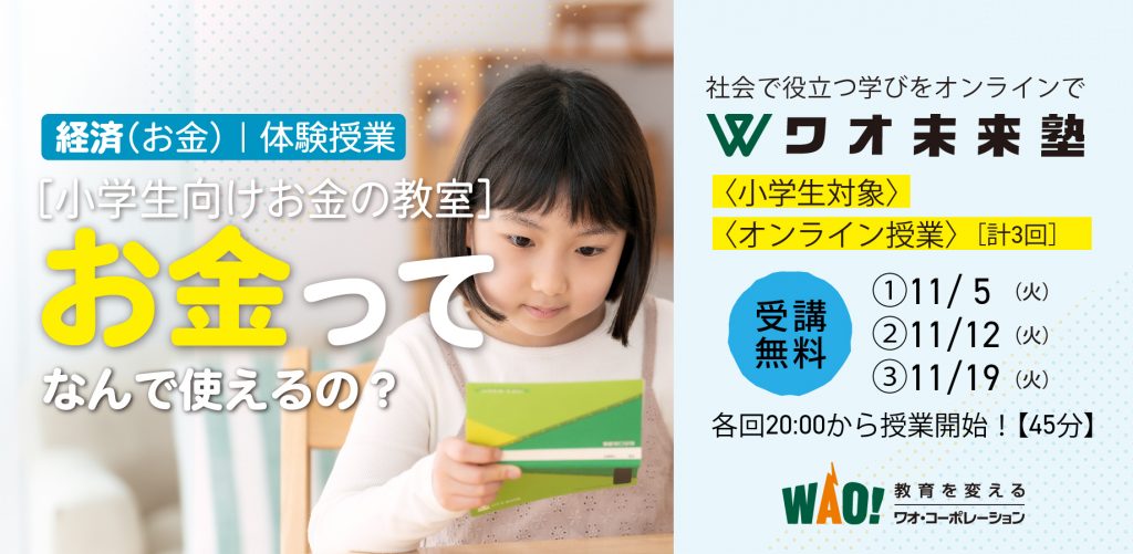 ワオ未来塾では、開校に先立って無料授業を実施します。対象は小学3〜6年生で、実施は「哲学(思考力)」「科学リテラシー」「経済(お金)」の3科目。1・2週目はいろんな視点からテーマについて学びを深めて、3週目にはみなさんからの質問やコメントを紹介して講師もいっしょにテーマについて考えます。